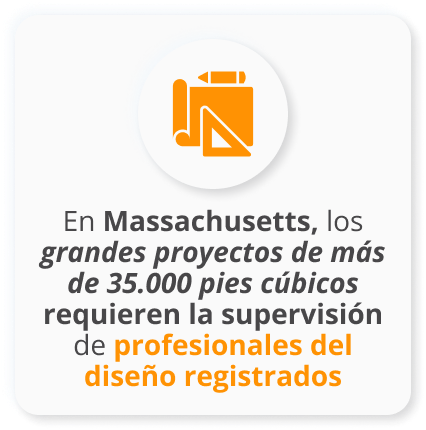 - Supervisión obligatoria de los PDR: Para los edificios que superen el umbral de 35.000 pies cúbicos, el estado de Massachusetts exige la supervisión de un Profesional del Diseño Registrado. Esto incluye a arquitectos e ingenieros licenciados, cuya experiencia es crucial para gestionar los intrincados aspectos de la construcción a gran escala.