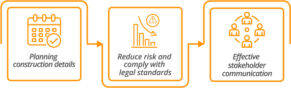 - Developing risk mitigation strategies and meeting legal and regulatory standards at various phases of construction