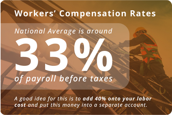 Many people do not like this option for it is expensive. Workers compensation rates for roofing vary from state to state, but the National Average is around 33% of payroll before taxes.