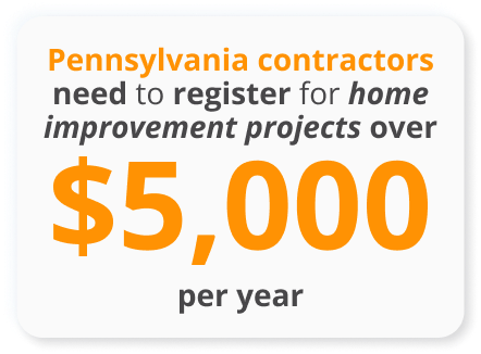 Pennsylvania General Contractor licenses are not required in the state. All contractors performing at least $5,000 in home improvement each year have to apply to the Attorney General.