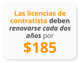 La tasa inicial de solicitud de una licencia de contratista en Michigan es de 195 dólares. Una vez aprobada tu solicitud y expedida la licencia, ten en cuenta los requisitos de renovación. Las licencias de contratista en Michigan deben renovarse cada dos años, y la tasa de renovación de la licencia vuelve a ser de 185 $. Para renovar tu licencia, también tendrás que completar la formación continua que se te exija, para asegurarte de que te mantienes al día de las normas y prácticas del sector.