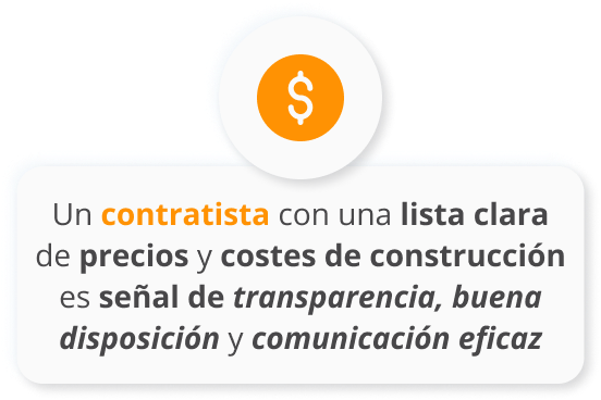 Un contratista con una lista clara de precios y costes relacionados con la construcción demuestra transparencia, disposición y comunicación eficaz. Con una lista detallada de precios, las expectativas de los clientes se fijan adecuadamente y también le ayuda a preparar presupuestos transparentes. Muestra a los clientes cómo y dónde se producen los distintos costes. Dado que pueden surgir costes inesperados durante el proyecto, la disponibilidad de una lista de precios le ayudará a desglosar y comunicar los costes excesivos de forma profesional.